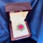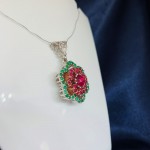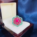 Серебряный гарнитур "Цветы". Рубины и изумруды
