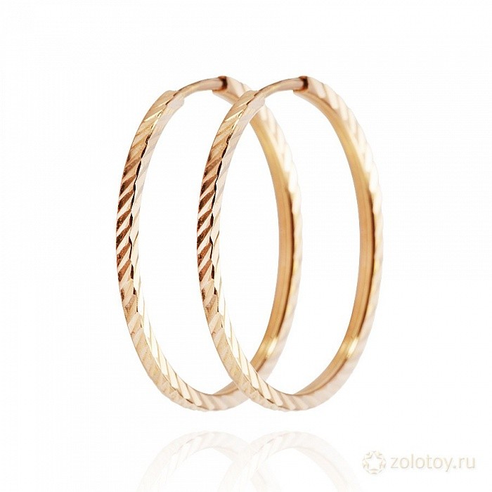 Русское золото 585 пробы Золотые серьги конго 30 мм. Элегантные серьги-кольца, известные как креолы, из красного золота 585 пробы c алмазной огранкой подчеркнут ваши женственность и грацию.