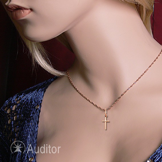 Крестик нательный золотой для детей из красного русского золота 585 пробы. В верхней части креста имеется колечко для шнура или цепочки. Не царапается при использовании.