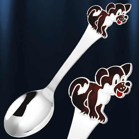 Детская ложка на зубок из серебра 925 пробы с фигуркой собачки, окрашенной горячей эмалью (цвет эмали может быть различным).