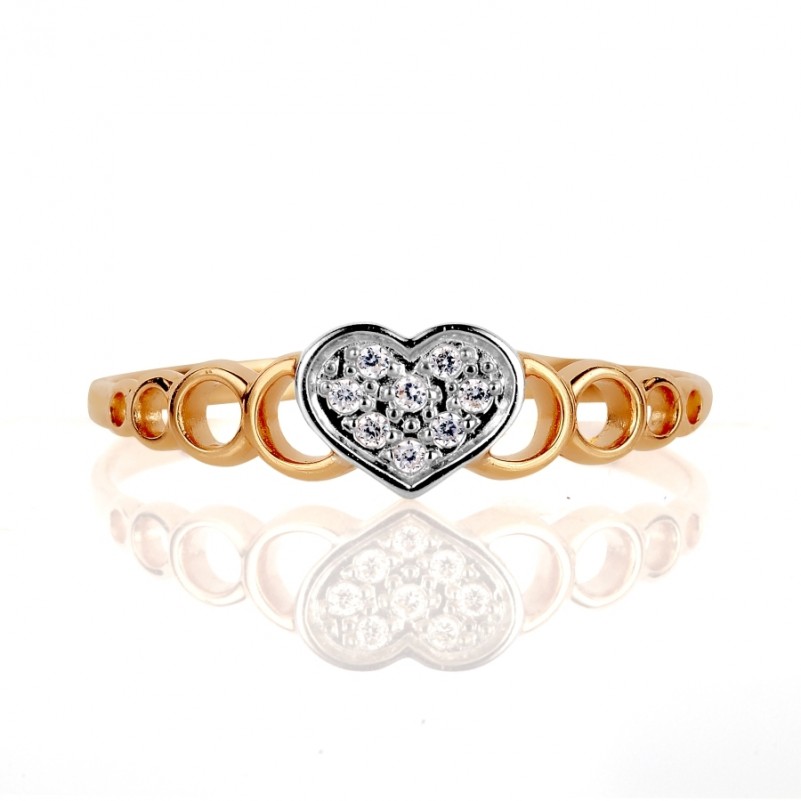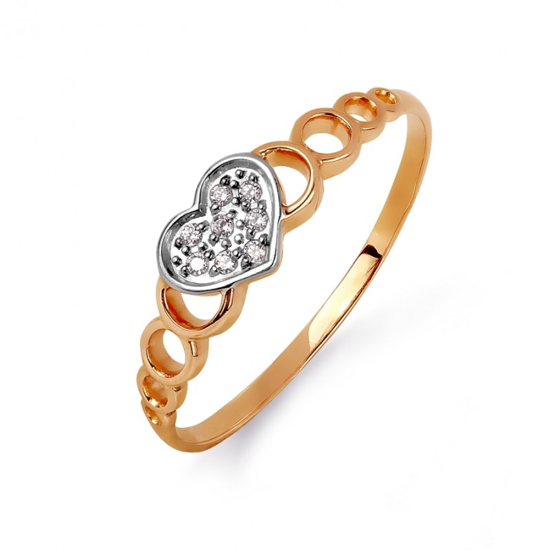 Кольцо выполнено из красного и белого русского золота 585 пробы, украшено 18 - ю фианитами Ø 1 мм, являющимися идеальной имитацией бриллианта. Кольцо прекрасно подчеркнет нежность, очарование и естественность Вашей красоты.