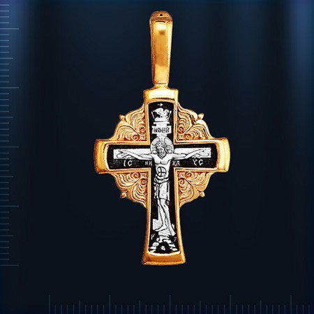 Православный крест Молитва "Отче Наш" из чернённого серебра 925 пробы позолоченный 999 пробы. Высота с ушком пр.43 мм., ширина пр.23 мм., толщина пр. 2 мм. Размеры ушка под цепочку пр.8 х 4 мм