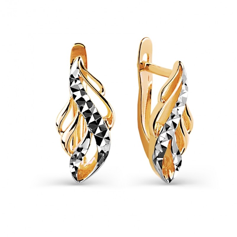 Золотые ажурные серьги с модным растительным орнаментом выполнены из красного и белого русского золота. Алмазная обработка