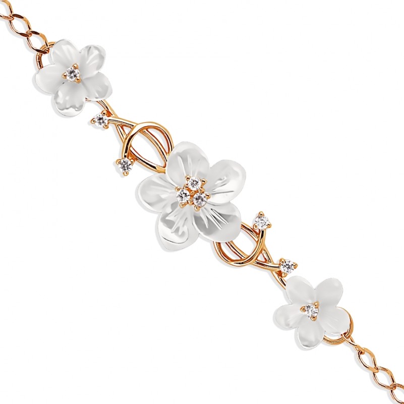 Обворожительный, необыкновенно красивый браслет из красного русского золота 585 пробы украшенный нежными ромашками из перламутра. Красота, роскошь и ничего больше! Такой браслет отлично украсит руку и подчеркнёт её изящность, станет дополнением образа и придаст ему шарма, женственности и изысканности