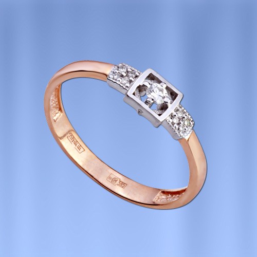 Кольцо золотое с бриллиантами. Невероятно красивое, шикарное и утонченное кольцо из красного и белого золота украшено бриллиантами. Необыкновенное сочетание материалов, цветов, камней. Кольцо покорит Вас своей красотой и блеском, поможет Вам почувствовать себя неотразимо. Золото 585 пробы.