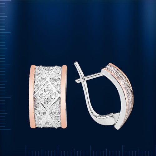 Стильные серьги Красотка из серебра 925 пробы комбинированные с золотом 375 пробы. Изделия изготовлены по специальной технологии. Украшения выглядят как из белого и красного золота, но стоят, как серебро!