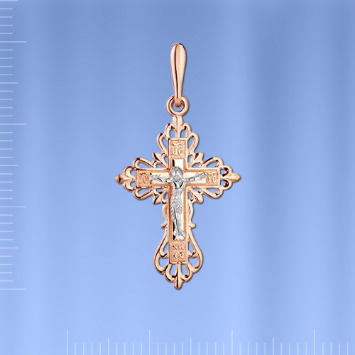 Православный золотой крест нательный с распятием. На ажурном, с алмазной гранью, основании закреплена отдельно выполненная из белого золота фигурка Иисуса Христа. В верхней части креста имеется колечко для цепочки. На задней части креста имеется надпись "Спаси и Сохрани". Такой крестик станет шикарным подарком для верующего человека, он не только станет лучшим украшением, которое носят возле сердца, но и надежным защитником!