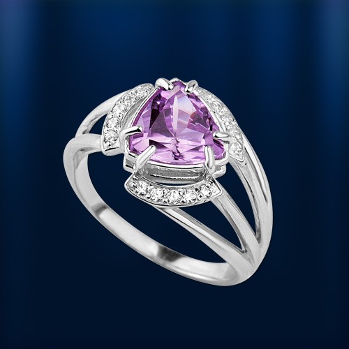 Аметист имеет необыкновенный фиолетовый цвет, насыщенность которого варьируется от бледно – фиолетового, голубоватого оттенка до темно-фиолетового, с красноватым оттенком. Аметист, сам по себе встречающийся в природе довольно часто, является полудрагоценным камнем, однако в оправе из золота он способен заиграть по-новому, удивляя и восхищая своим глубоким, таинственным фиолетовым цветом. Кольцо из этого чудесного яркого камня станет для вас оригинальным и модным украшением, которое, без сомнения, будет притягивать восторженные взгляды окружающих