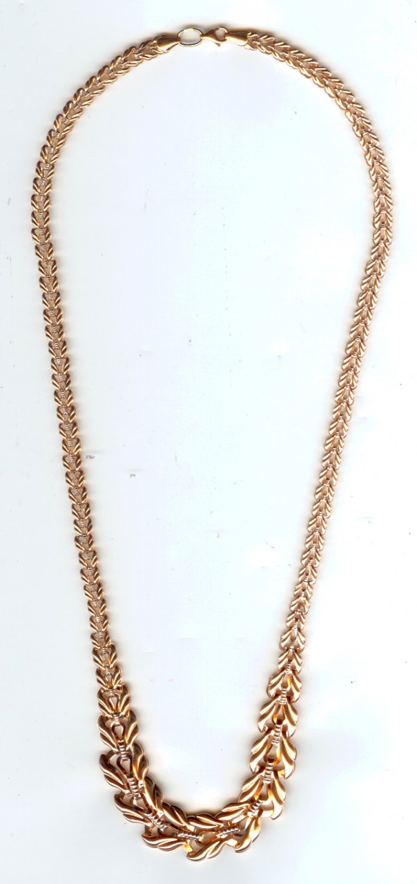 колье из красного золота, браслет из красного золота. Элегантное объёмное колье и браслет из русского красного золота 585 пробы замечательно украсит изящную женскую руку, шею и грудь. Колье и браслет выглядят массивно и богато, сверкая алмазными гранями, привлекают восторженные взоры окружающих!