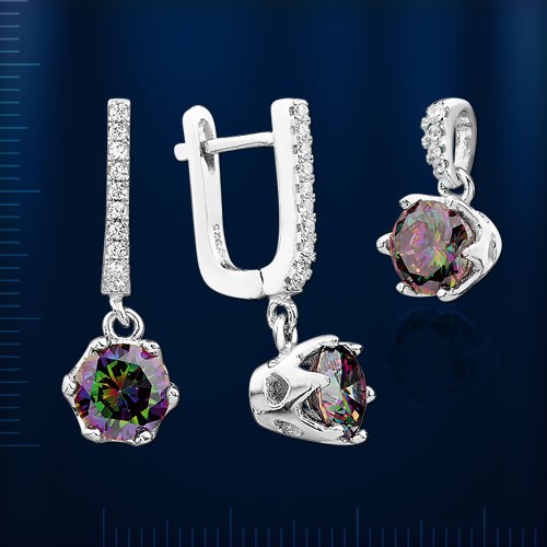 Вставка : 2 фианита - хамелион ¢ 7.0 мм, сверкающие фианиты ¢ 1.0 мм