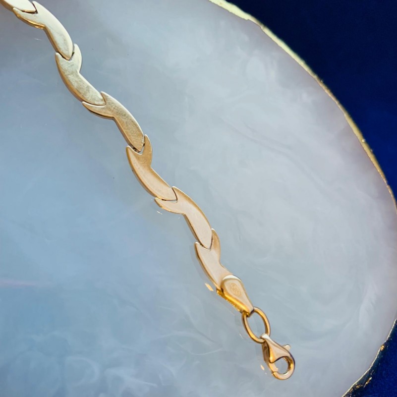 Плетение: Фантазийное плетение цепочки – это техника, совершенно не схожая ни с одной из популярных и классических. В таком витье преобладает свободный полет творческой мысли мастера, который сам составляет комбинацию звеньев, придавая украшению уникальную невиданную ранее форму. Изделие из этого плетения прекрасно подчеркнёт Вашу индивидуальность и неповторимость!