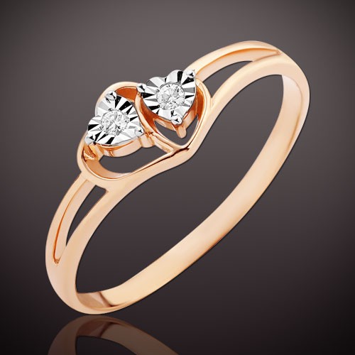 Красивое и утонченное кольцо из красного и белого золота с бриллиантами. Кольцо покорит Вас своей красотой и блеском, поможет Вам почувствовать себя неотразимо! Золото 585 пробы