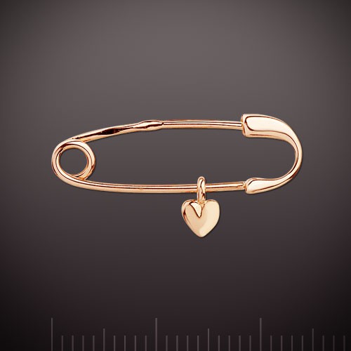 Детская булавка из красного русского золота 585 пробы с сердечком. Этому миниатюрному аксессуару всегда найдется место в гардеробе Вашего ребенка. Такая детская булавка из золота может скрепить шарф или палантин, закрепить другой аксессуар на одежде или сумочке, и наконец, эта детская золотая булавка может послужить оберегом