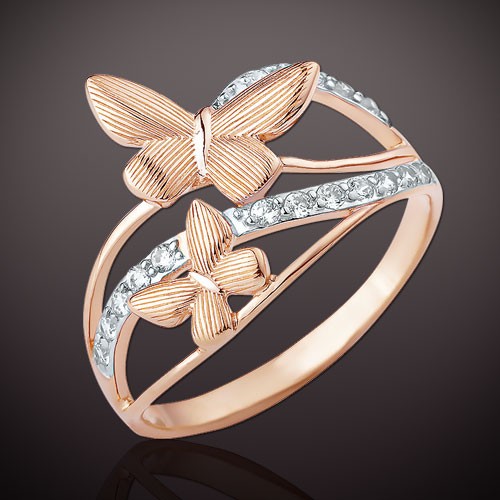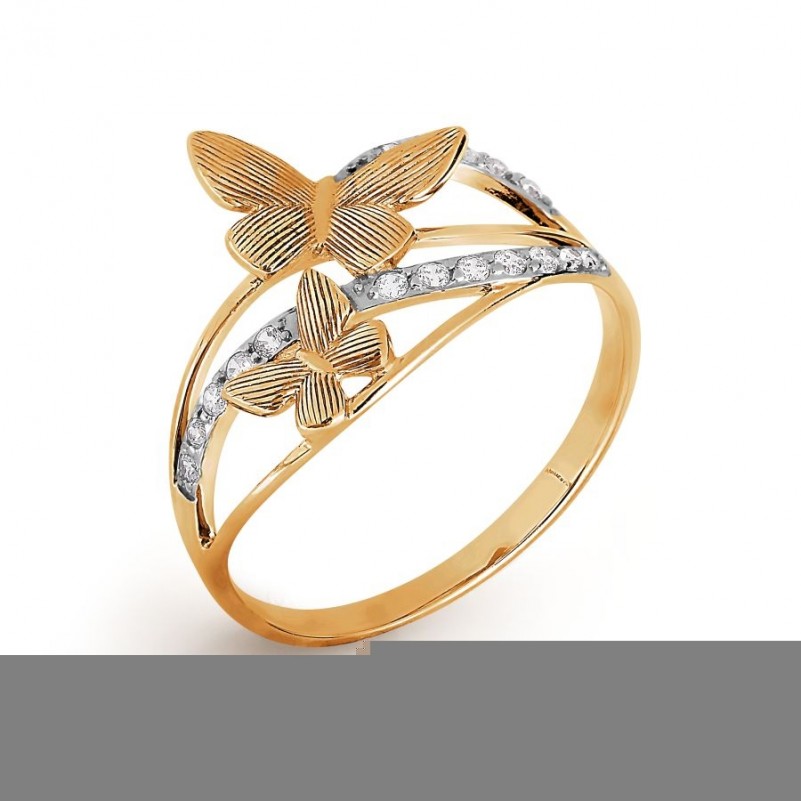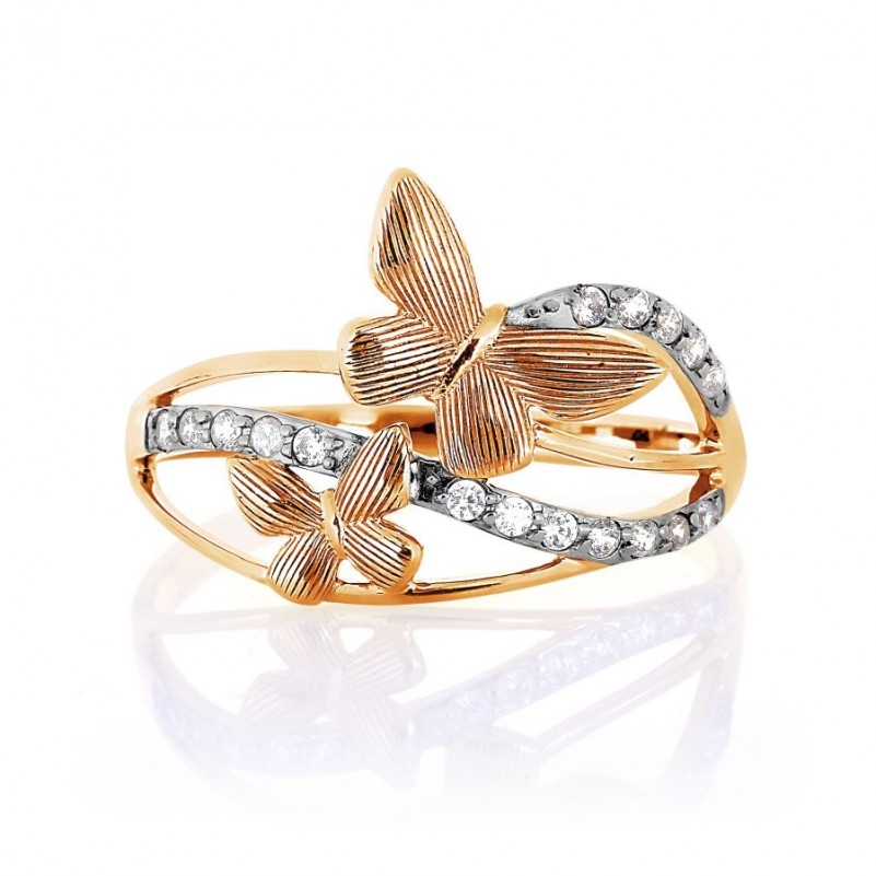 Кольцо выполнено из красного русского золота 585 пробы, комбинированного с белым и украшенно сверкающими фианитами, являющимся идеальной имитацией бриллианта!