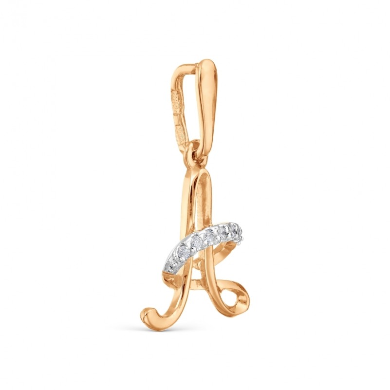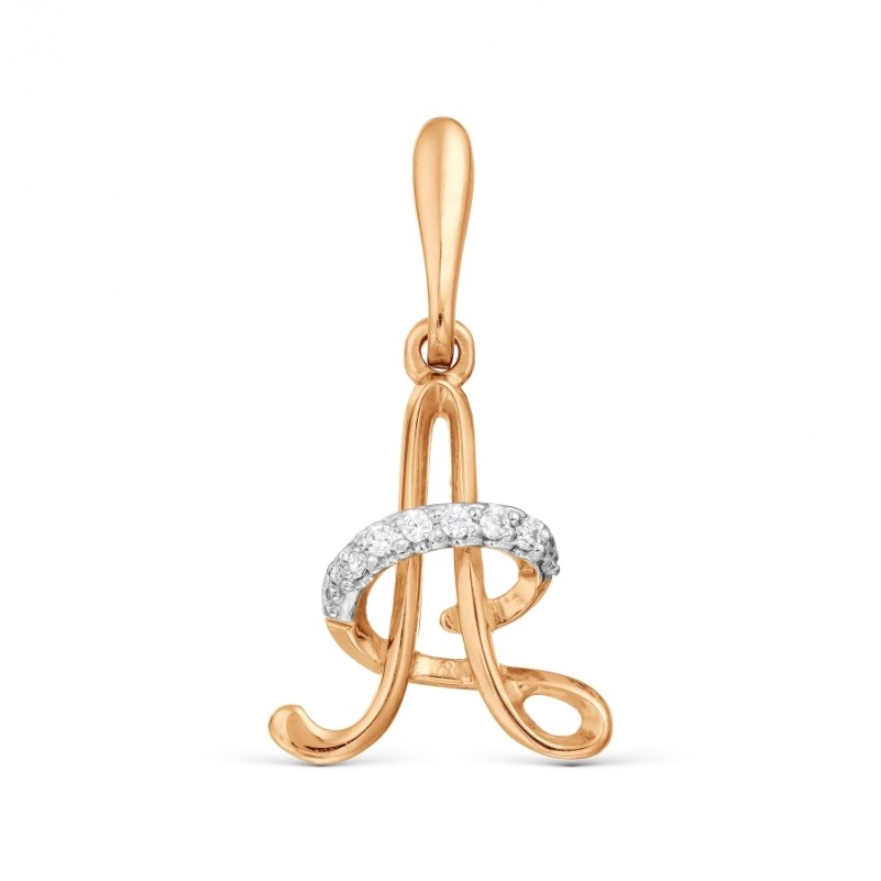 Изящная подвеска из русского красного и белого золота 585 пробы в виде буквы "А"