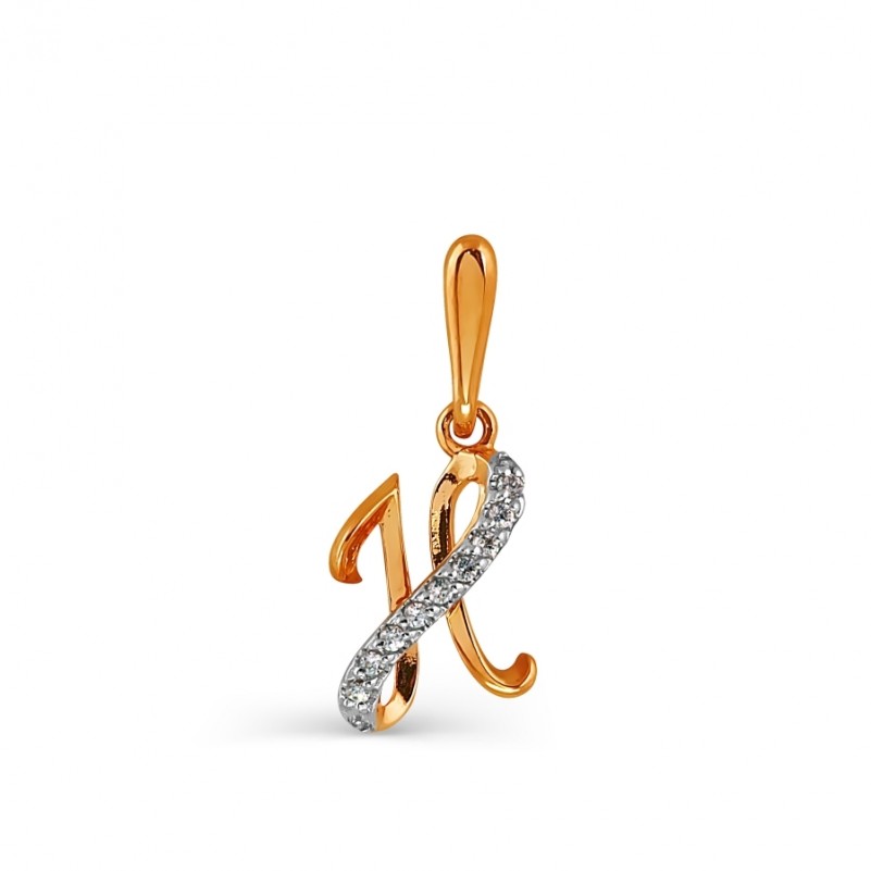 Изящная подвеска из русского красного и белого золота 585 пробы в виде буквы "Н"