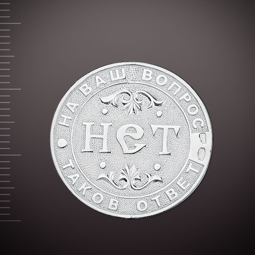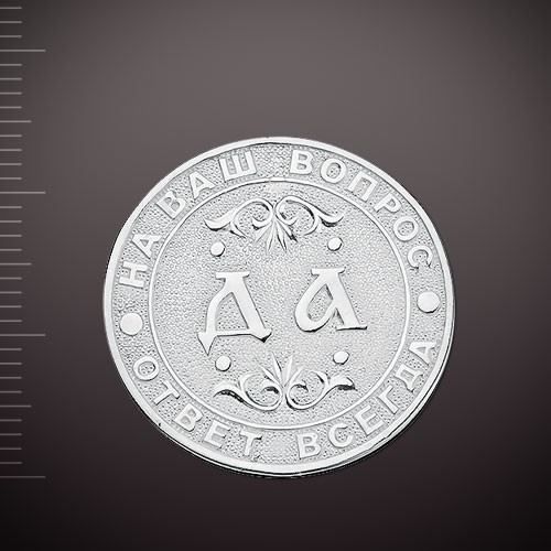Серебряная монета Да - Нет: хороший и забавный сувенир для выяснения ответов на сложные вопросы. Нет ничего проще: задал вопрос, подбросил монету, получил ответ на вопрос. Как идея для подарка эта монетка, выполненная из серебра 925 пробы, будет как нельзя кстати!