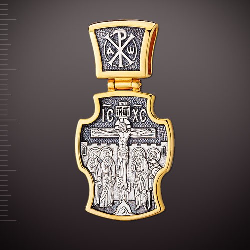 Крест (литье) серебро 925 °с рельефным рисунком с обеих сторон, локальное золочение, чернение.