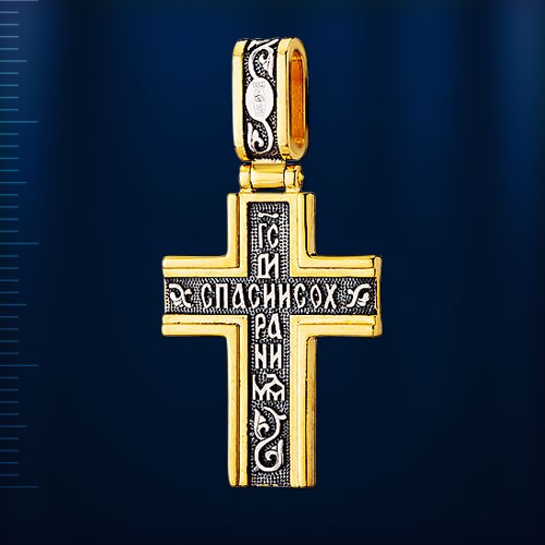 Крест (литье) серебро 925 °с рельефным рисунком с обеих сторон, локальное золочение, чернение