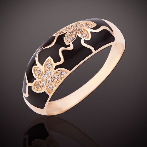 Кольцо выполнено из красного русского золота 585 пробы, покрыто черной эмалью и украшенно сверкающими фианитами, являющимся идеальной имитацией бриллианта!