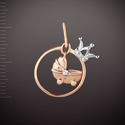 Трогательная золотая подвеска "Детская коляска" выглядит очень мило! Подвеска выполненна из красного и белого русского золота 585 пробы.