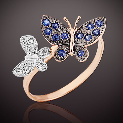 Особенность этому кольцу придаёт так же частичное чернение деталей, нанесённое на золото, с помощью новых технологий. Красное и белое золото 585 пробы