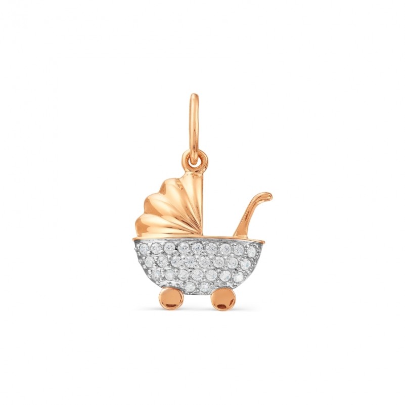 Трогательная золотая подвеска "Детская коляска" выглядит очень мило! Подвеска выполненна из красного и белого русского золота 585 пробы