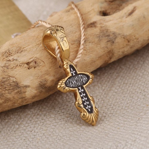 Распятие Христово. Православный крест из чернёного серебра 925 пробы, позолоченный 999 проба. Литьё. Ручная работа