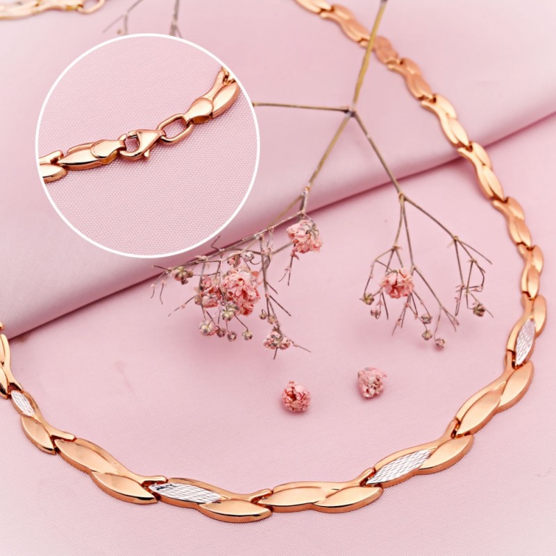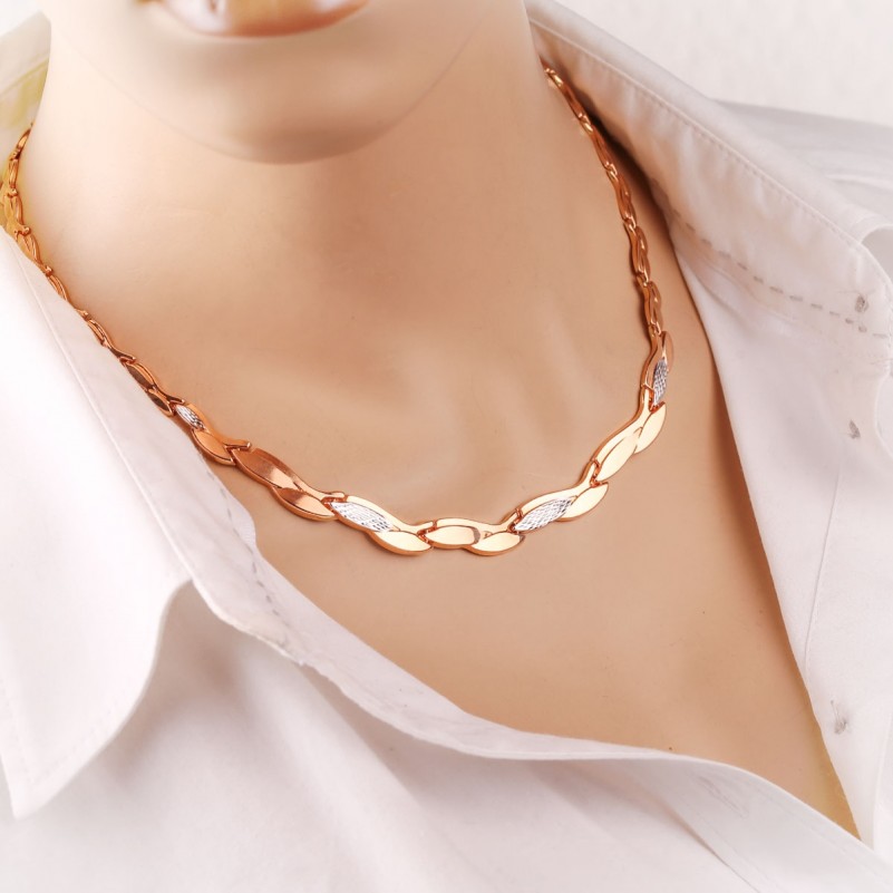 Колье из русского золота 585 Алмазная грань. Изящное и женственное колье со сверкающей алмазной гранью из белого и красного золота 585-й пробы. Внутренняя часть колье закрытая, ровная и блестящая. Колье из золота создают необходимый акцент в образе, и привлекают внимание к богатству и роскоши аксессуаров, ведь золото – это красиво, стильно, шикарно, дорого.