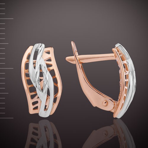 Великолепные серьги выполнены из красного и белого русского золота 585 пробы