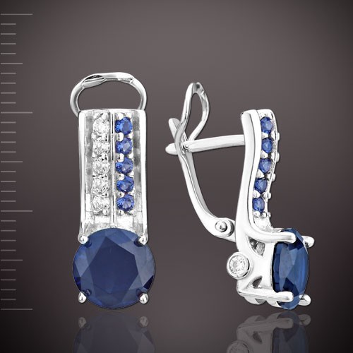 Стильные серьги выполнены из серебра 925 пробы и украшены крупными ярким наносапфирами!