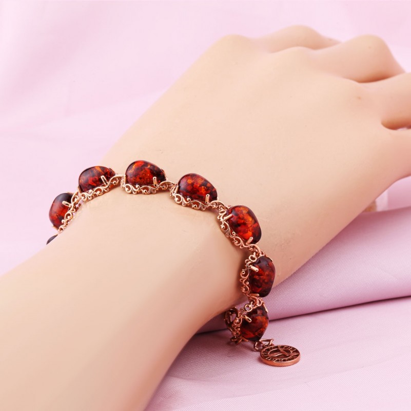 Трогательный женственный браслет с янтарём, с этим удивительным «кусочком солнца», играющим всеми оттенками медового цвета, зачаровывая и пленяя своей красотой, будет радовать вас всегда!