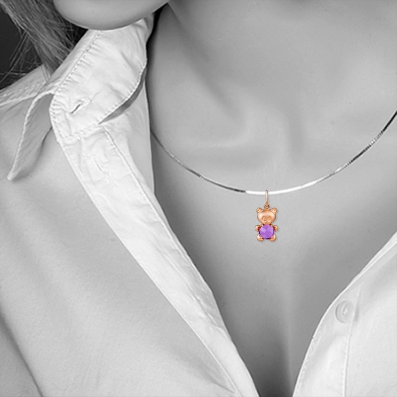 Подвеска из русского красного золота 585 пробы в форме медвежонка со вставкой аметиста.