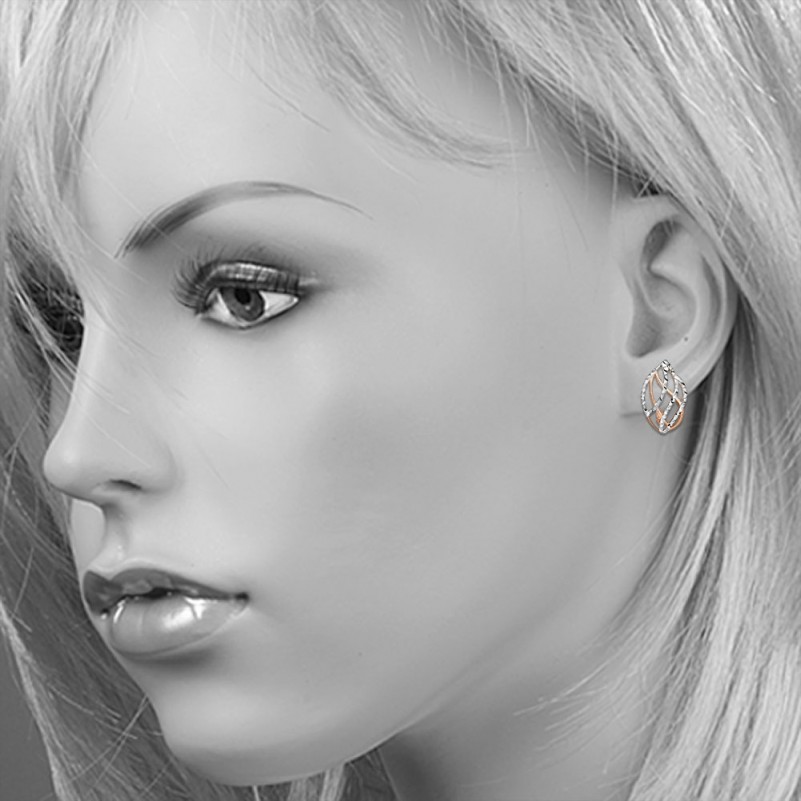 Золотые ажурные серьги с изящным растительным орнаментом, выполнены из красного и белого русского золота 585 пробы. Алмазная огранка!