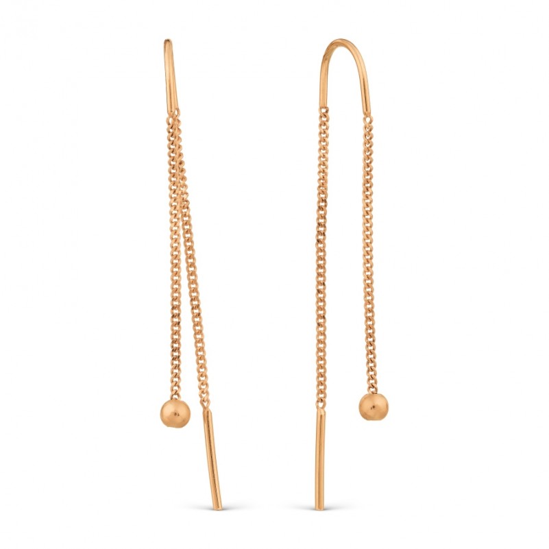 Серьги - продевки в виде цветов из русского красного золота 585 пробы.