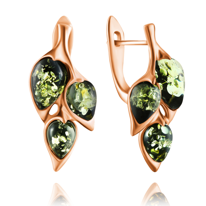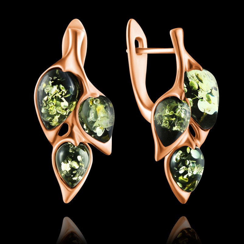 Очаровательные серьги из серебра 925 пробы с твёрдой позолотой и янтарём, с этим удивительным «кусочком солнца», играющим всеми оттенками зелёного цвета. Уникальная возможность подчеркнуть свою индивидуальность, придать образу женственности, солнечности и нежности.