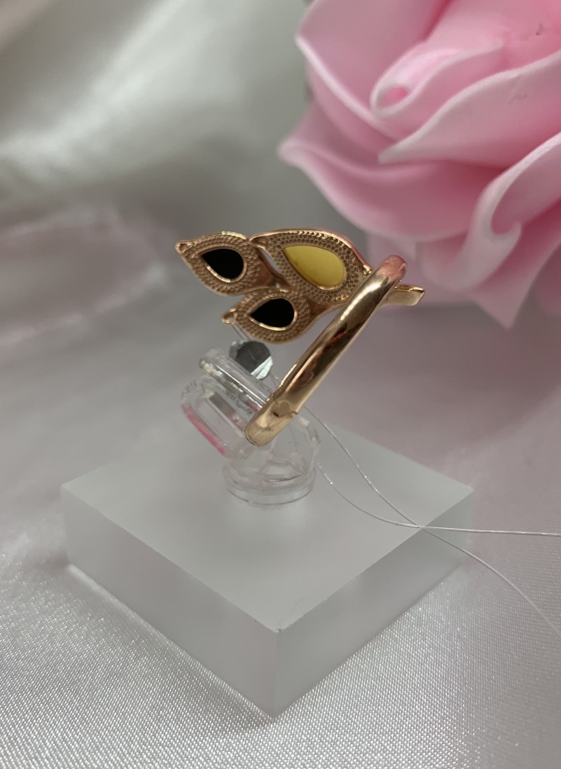 Очаровательное кольцо из серебра 925 пробы, с твёрдой позолотой и вставкой королевского и зелёного янтаря, этого удивительного «кусочка солнца»! Кольцо прекрасно подчеркнет нежность, очарование и естественность Вашей красоты и обращает внимание на женственность Ваших рук.