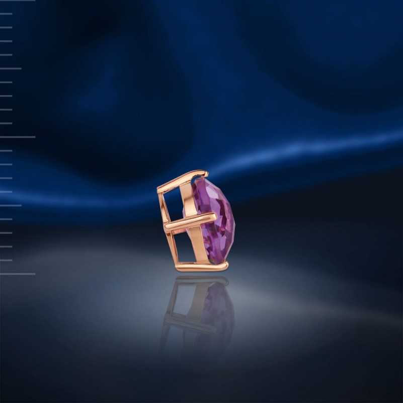 Обворожительная, изящная, романтичная подвеска-бегунок из красного золота 585 пробы со вставкой сверкающего аметиста.