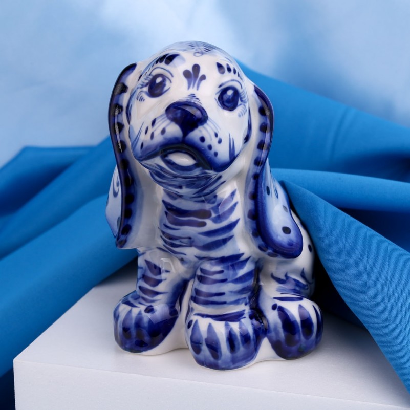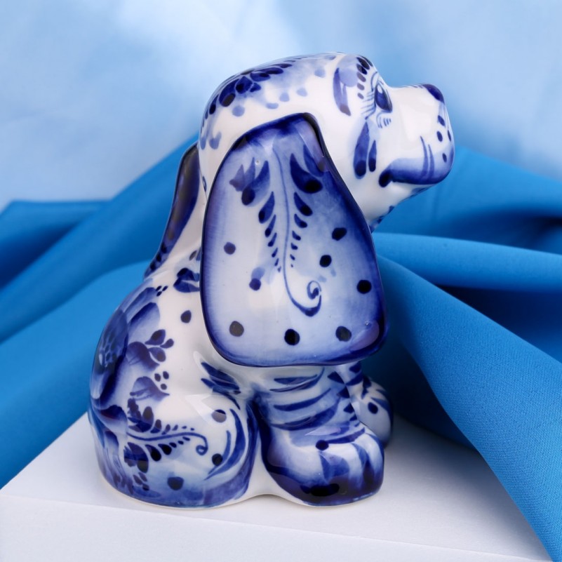 Эта фарфоровая фигурка прекрасна как внешне, так и по качеству. Она покрыта ручной росписью и превосходно передаёт весёлый и добрый нрав четвероногого друга. Автор талантливо расписал фигурку в синих гжелевских оттенках, превратив её в уникальное миниатюрное произведение искусства. Прекрасный подарок для любителя собак, а также для друзей и семьи!