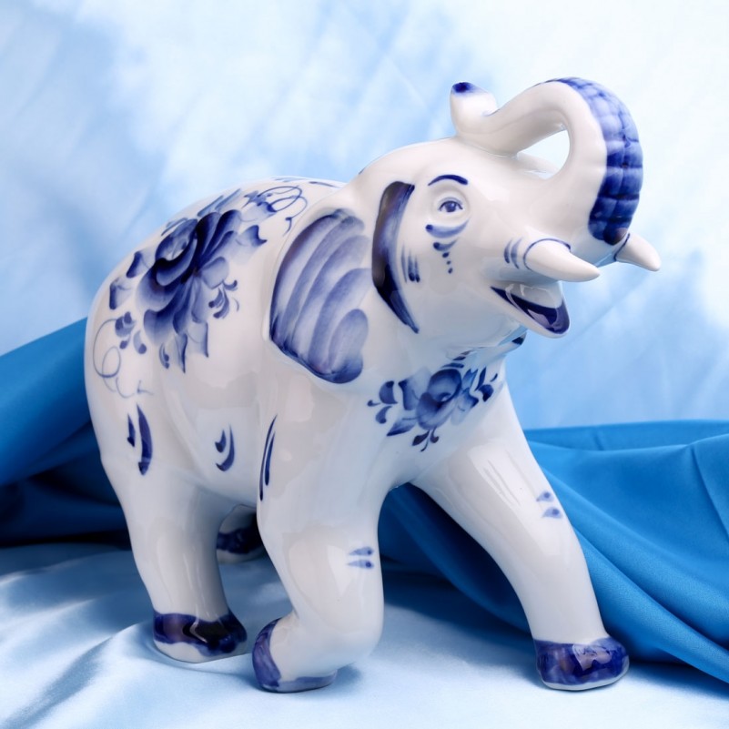 Эта фарфоровая фигурка прекрасна как внешне, так и по качеству. Она покрыта ручной росписью. Автор талантливо расписал фигурку в синих гжелевских оттенках, превратив её в уникальное миниатюрное произведение искусства. Прекрасный подарок для любителя слонов, а также для друзей и семьи! Каждая фигурка расписана вручную, поэтому она неповторима!