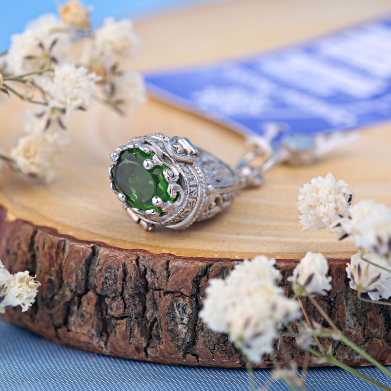 Серебряная подвеска - ладанка с иконой из серебра 925 пробы с покрытием родия и вставкой зелёного фианита.