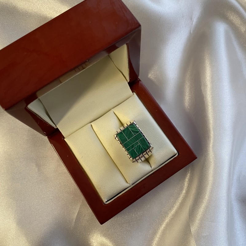 Мужское кольцо-печатка из чернёного серебра 925 пробы, украшеное малахитом. Каждому мужчине хочется иметь свой стильный акцент, дорогую вещь, которая подчеркнет статус. Отличный выбор для тех, кто желает предать своему образу большей солидности, значимости и нестандартности во внешнем облике. Дополните свой образ и подчеркните свою индивидуальность всего одним оригинальным аксессуаром и Вы не прогадаете.