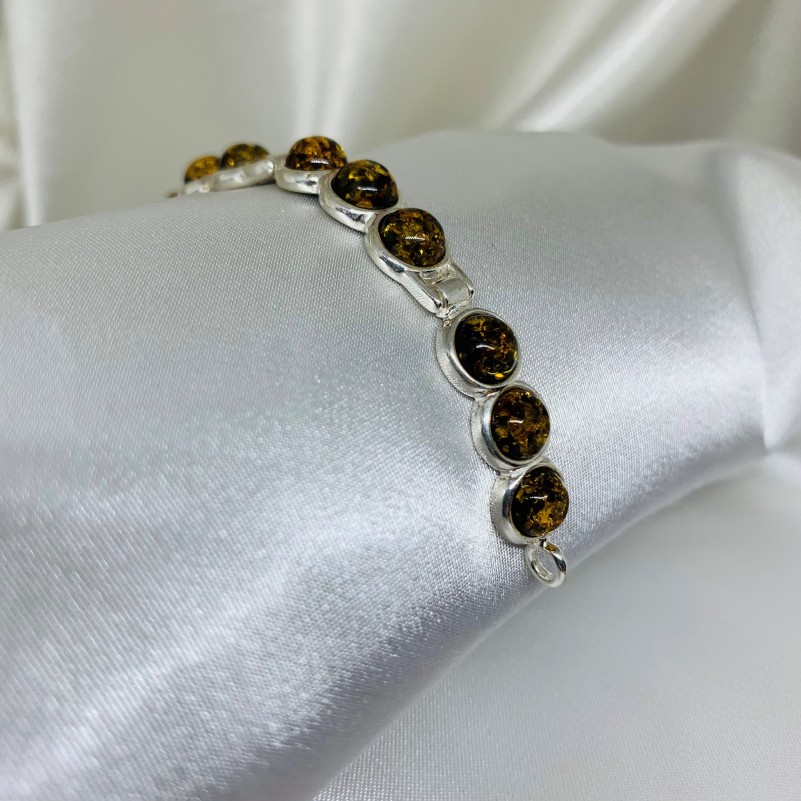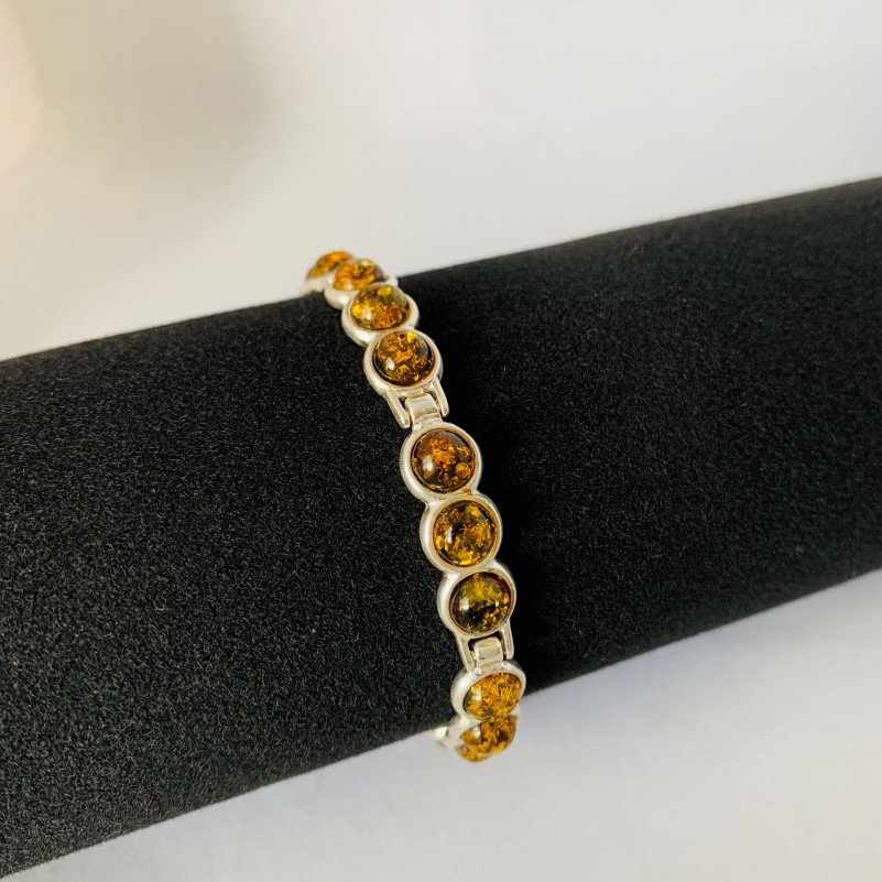 Шикарный женственный браслет из серебра 925 пробы, с янтарём, этим удивительным «кусочком солнца», играющим всеми оттенками медового цвета, зачаровывая и пленяя своей красотой, будет радовать вас всегда! Уникальная возможность подчеркнуть свою индивидуальность, придать образу женственности, солнечности и нежности.