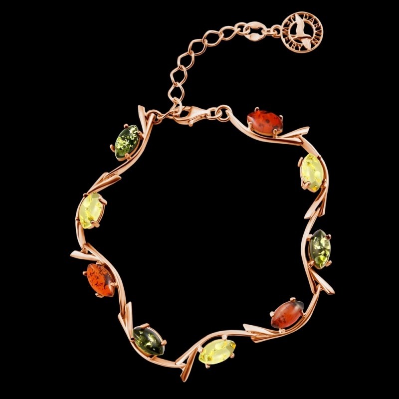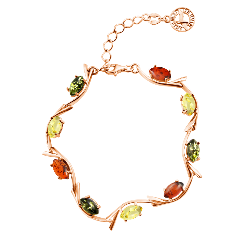 Эффектный женственный браслет из позолоченного серебра 925 пробы, с янтарём, с этим удивительным «кусочком солнца», играющим всеми оттенками зелёного, медового и красного цвета, зачаровывая и пленяя своей красотой, будет радовать вас всегда! Уникальная возможность подчеркнуть свою индивидуальность, придать образу женственности и нежности. Красивое сочетание блеска золота и солнечного янтаря придаст вашему образу праздничного настроения!