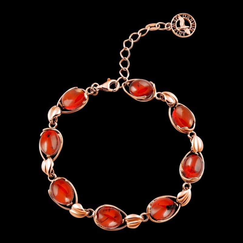 Очаровательный женственный браслет из позолоченного серебра 925 пробы, с янтарём, с этим удивительным «кусочком солнца», играющим всеми оттенками коньячного цвета, зачаровывая и пленяя своей красотой, будет радовать вас всегда! Уникальная возможность подчеркнуть свою индивидуальность, придать образу женственности и нежности. Красивое сочетание блеска золота и солнечного янтаря придаст вашему образу праздничного настроения!