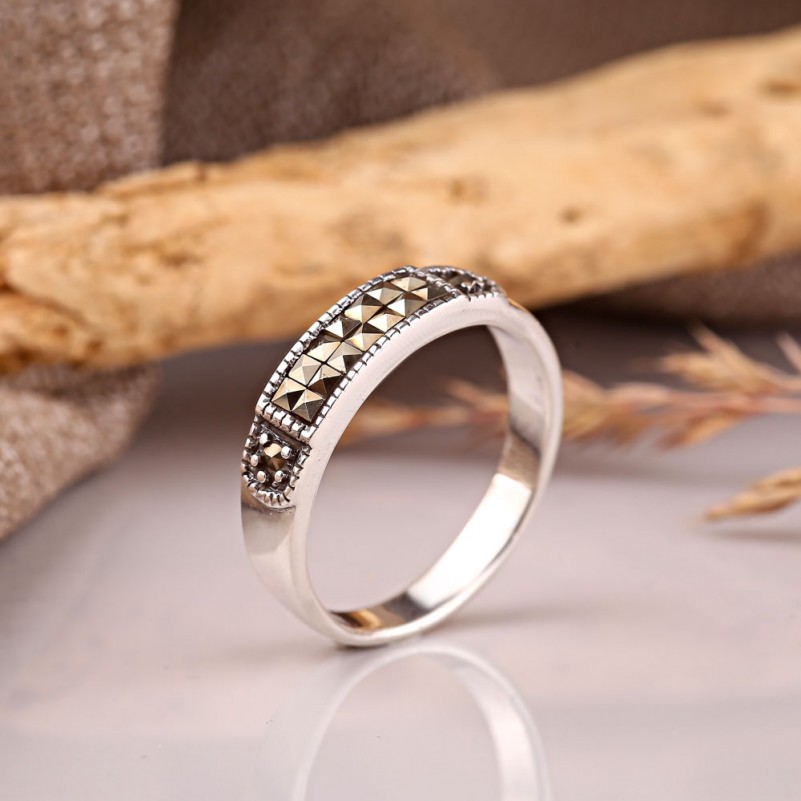 Оригинальное кольцо из чернёного серебра 925 пробы со вставками глубокого марказита. Такое кольцо подчеркнёт утончённость вкуса. Оно универсально, поэтому подойдёт как мужчине, так и женщине.