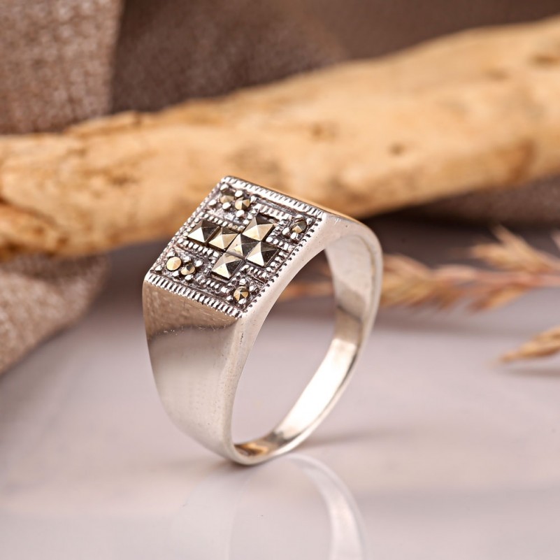Мужское кольцо-печатка из чернёного серебра 925 пробы со вставками глубокого марказита. Каждому мужчине хочется иметь свой стильный акцент, дорогую вещь, которая подчеркнет статус. Отличный выбор для тех, кто желает предать своему образу большей солидности, значимости и нестандартности во внешнем облике. Дополните свой образ и подчеркните свою индивидуальность всего одним оригинальным аксессуаром и Вы не прогадаете.