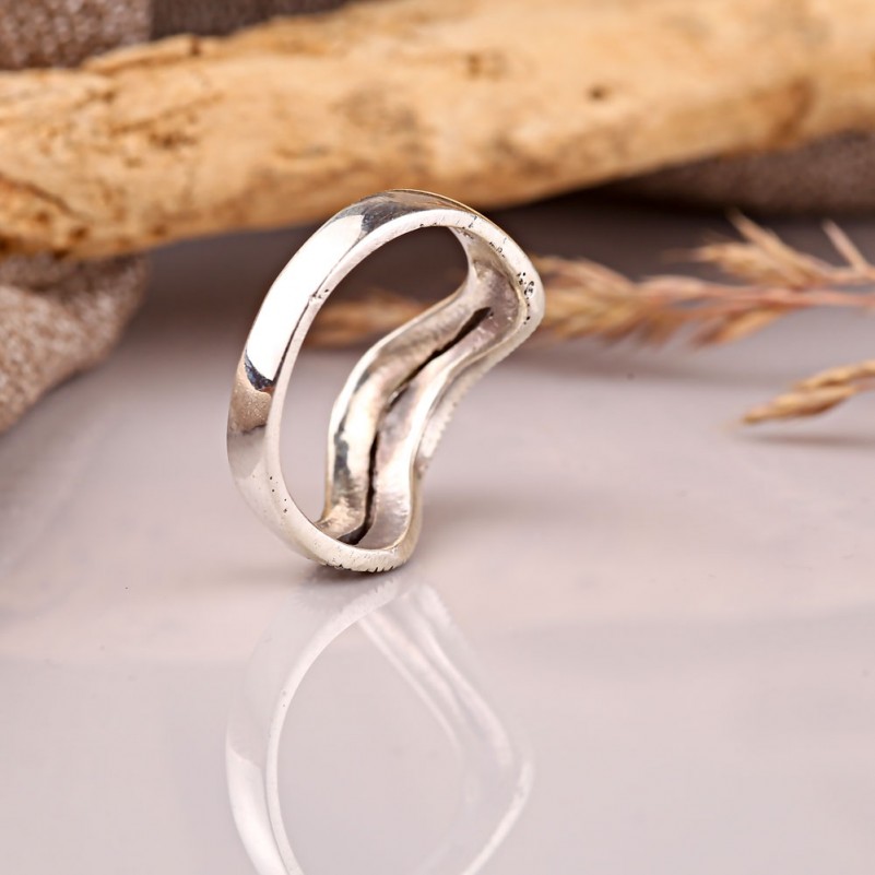 Оригинальное кольцо из чернёного серебра 925 пробы со вставками глубокого марказита. Такое кольцо подчеркнёт утончённость вкуса и изящество рук.
