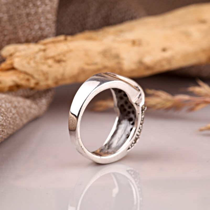 Оригинальное кольцо из чернёного серебра 925 пробы со вставками глубокого марказита. Такое кольцо подчеркнёт утончённость вкуса и изящество рук.