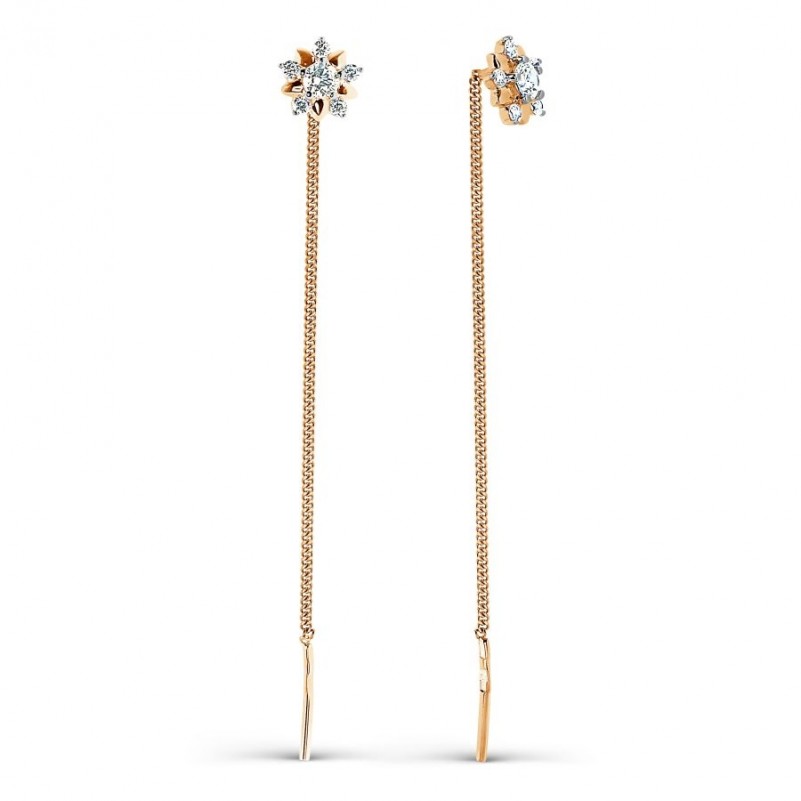 Очаровательные женственные серьги - продевки из белого и красного золота 585 пробы со вставками сверкающих фианитов. Эти серьги привлекают своей свежестью, нежностью и красотой! Превосходно подойдут как Вам, так и Вашей маленькой принцессе.